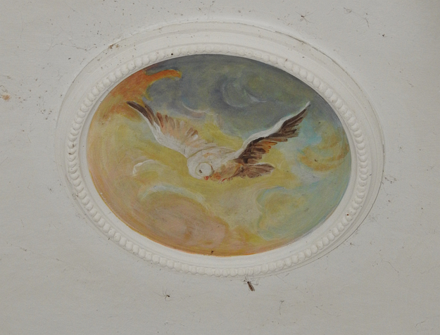 An den Seitenwände Sitzbänke und Kreuzweg-Bilder. An der höchsten Stelle der gewölbten Decke in einem runden Kreis findet sich das Bild einer Taube als Sinnbild des Heiligen Geist (statt der vorigen Holztaube). Die Taube, die Malerei an der Außenseite und die Kreuzwegbilder stammen vom gleichen Künstler und entstanden bei der Renovierung.